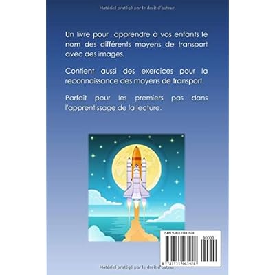 Livre pour apprendre à vos enfants le nom des différents moyens de transport avec des images. Contient aussi des exercices pour la reconnaissance des moyens de transport. Parfait pour les premiers pas dans l'apprentissage de la lecture.