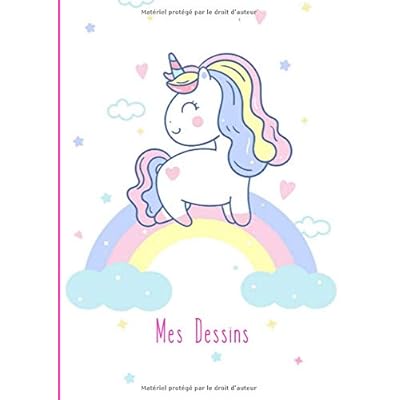 Mes Dessins: A4 - 100 pages de papier vierge - Journal d'artiste / Journal créatif / Bloc à dessin / Bloc-notes / Kawaii Licorne mignonne sur un arc en ciel Details