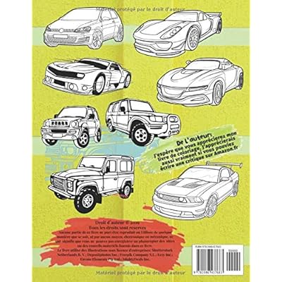 Voiture Livre de coloriage pour jeune adulte. Plus de 200 modèles de voitures: Land Rover, Suzuki, Mazda, Chevrolet, Opel, Ford et d'autres. Dessins dessinés à la main. Bon pour tous les âges. L'art-thérapie. Livres de coloriage ultimes pour adolescent Grand livre 400+ pages * Grand format 216x280 mm * Fabriqué en France Allégez votre stress à chaque coup de crayon ou de stylo de couleur. Ce livre est parmi les livres de coloriage les plus populaires. Chaque cercle sacré vous aidera à vider votre esprit et à aiguiser votre créativité. C'est le meilleur livre de qualité à colorier pour les hommes, les femmes et les enfants. - PAPIER DE HAUTE QUALITÉ - Nous utilisons du papier de la plus haute qualité qui durera pendant des années. Avec des pages blanches brillantes et lisses, notre papier est idéal pour présenter les crayons de couleur, les marqueurs, les pastels et les stylos gel. - DESSINS À LA MAIN - Tous les dessins ont été minutieusement dessinés à la main puis numérisés pour nettoyer et affiner chaque ligne. Nous incluons des images bonus de chaque image dessinée à la main avant le rendu. - BON POUR TOUS LES AGES - Nos designs sont excellents pour les enfants et les adultes. Les conceptions varient en complexité du niveau débutant à expert. Permettez à votre enfant intérieur de briller. - L'ART-THÉRAPIE - Notre livre de coloriage anti-stress est une thérapie d'art pour votre âme. Un livre de coloriage peut vous aider à échapper aux appareils électroniques et vous procurer des heures de détente.